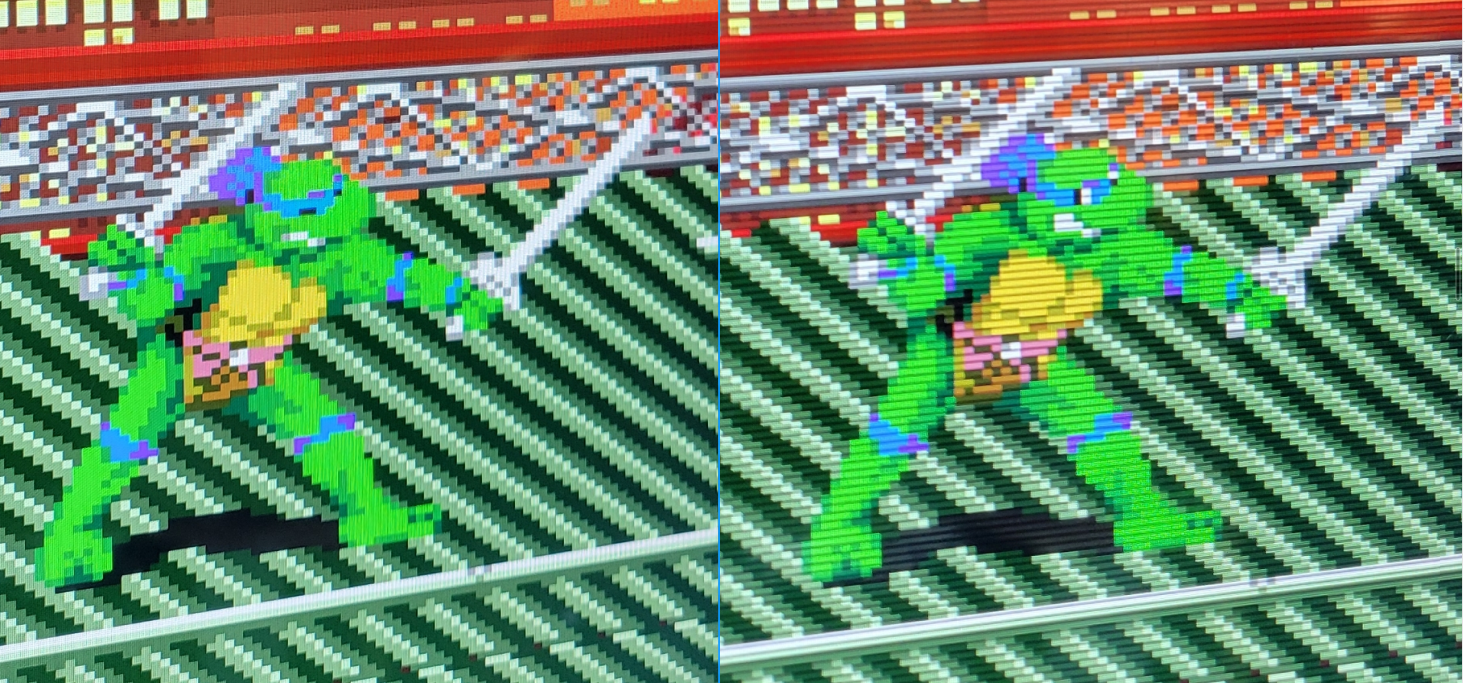 Arcade games include artwork that was originally intended to be displayed on a CRT tube display. Unfortunately, arcade graphics don't translate well to LCD screens, and can yield an image that looks flat and pixelated. For more examples & comparisons, go check out @CRTpixels on the site that used to be called Twiddlers.